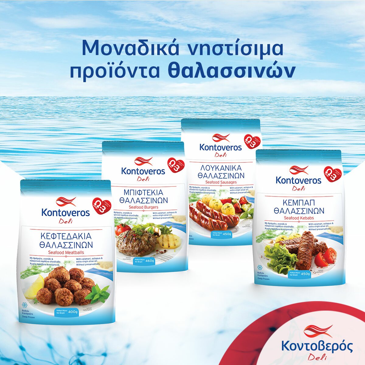 Γιατί, στην ΚΟΝΤΟΒΕΡΟΣ, παντρεύοντας τη γνώση με την πιο σύγχρονη τεχνολογία, δημιουργήσαμε τη σειρά “Μύρισε Θάλασσα” που φέρνει σε κάθε ελληνικό τραπέζι μόνο ποιοτικά κατεψυγμένα αλιεύματα & έτοιμα γεύματα.